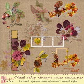 Этот совместный осенний набор дизайнеров Оскрап в сдержанной цветовой гамме создан для запечатления моментов уходящей осени. На общем превью элементов представлены не все элементы, вошедшие в набор. Вы можете в подробностях рассмотреть состав набора на дополнительных превью от дизайнеров, участвовавших в создании нашего осеннего набора.Набор представлен в разных стилях, часть в псевдобумажном, часть в реалистичном, часть в рисованном.