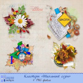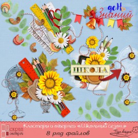 Осень - школьная пора! Этот набор кластеров на школьную тематику входит в состав общей коллекции дизайнеров Оскрап "Школьный сезон". Мы очень рады представить вам готовые кластеры и оверлеи, чтобы максимально упростить труд по созданию школьного или выпускного альбома для ваших дорогих учеников! На дополнительных превью можно рассмотреть подробно каждый кластер и оверлей. Мы надеемся, что наш набор придется по вкусу многим мастерицам фотокниг, к тому же он имеет очнеь демократичную стоимость за такое количество кластеров в одном наборе.