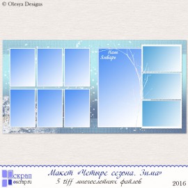 Представляю Вашему вниманию первую часть про зимние месяцы многослойного макета фотокниги "Четыре сезона". Макет будет полезен всем любительницам проекта 365 или просто оформляющим свои семейные фотокниги за каждый год. Макет выполнен в классическом стиле с небольшим добавлением акцентов. Все элементы, фон, рамочки для фотографий на отдельных слоях, поэтому можно передвинуть или изменить размер любого фото и элемента под Ваши требования. Все элементы разворотов, что помещены на превью, входят в состав набора.