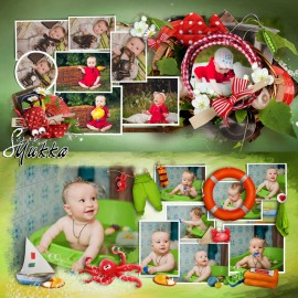Представляю Вашему вниманию шаблоны для детской фотокниги "От рождения до..." С помощью данного шаблона Вы без труда можете оформить фотокнигу для своего сыночка или дочки. Для самых маленьких деток, можно оформить развороты по месяцам, в отдельные развороты можно вынести фотографии в роддоме, первого купания, первого прикорма, первой прогулки, сладкого сна. В шаблоне основной акцент делается на главное фото, которое нужно поместить на маску. Остальные фото размещаются на следующей странице, но уже в меньшем размере. Ну а украшения фотокниги будут зависеть только от Вашей фантазии, для наглядности к превью шаблона прикреплены варианты оформления каждого разворота.